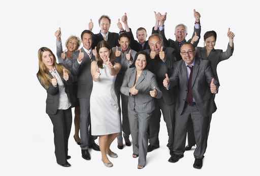 Große Gruppe von Geschäftsleute, die Daumen nach oben gegen we